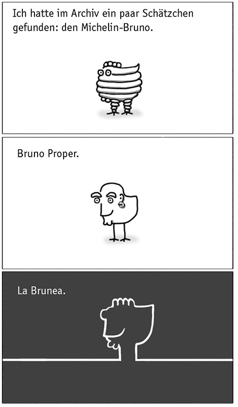 Bruno Comic von Christof Rickert seit über zehn Jahren wöchentlich montags ein kleines Comictriple.